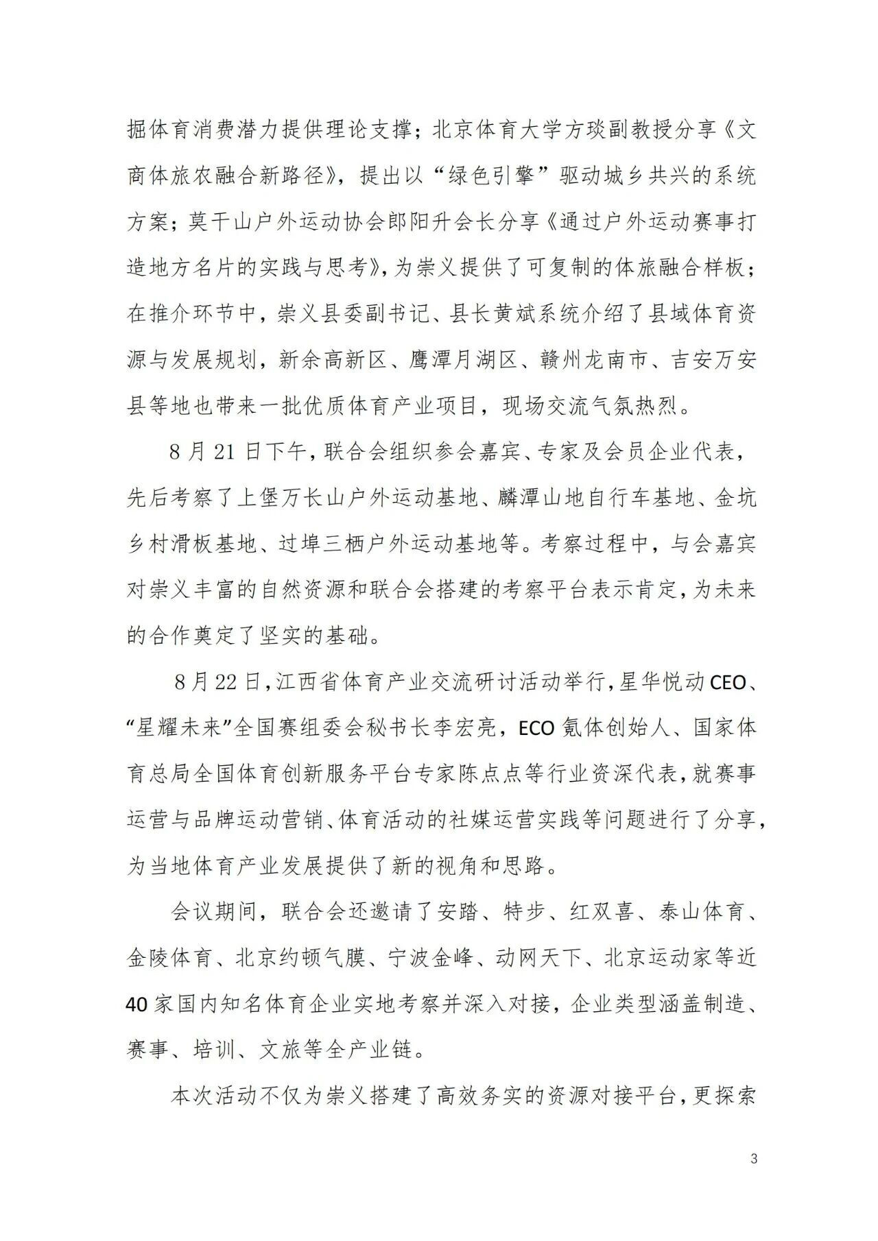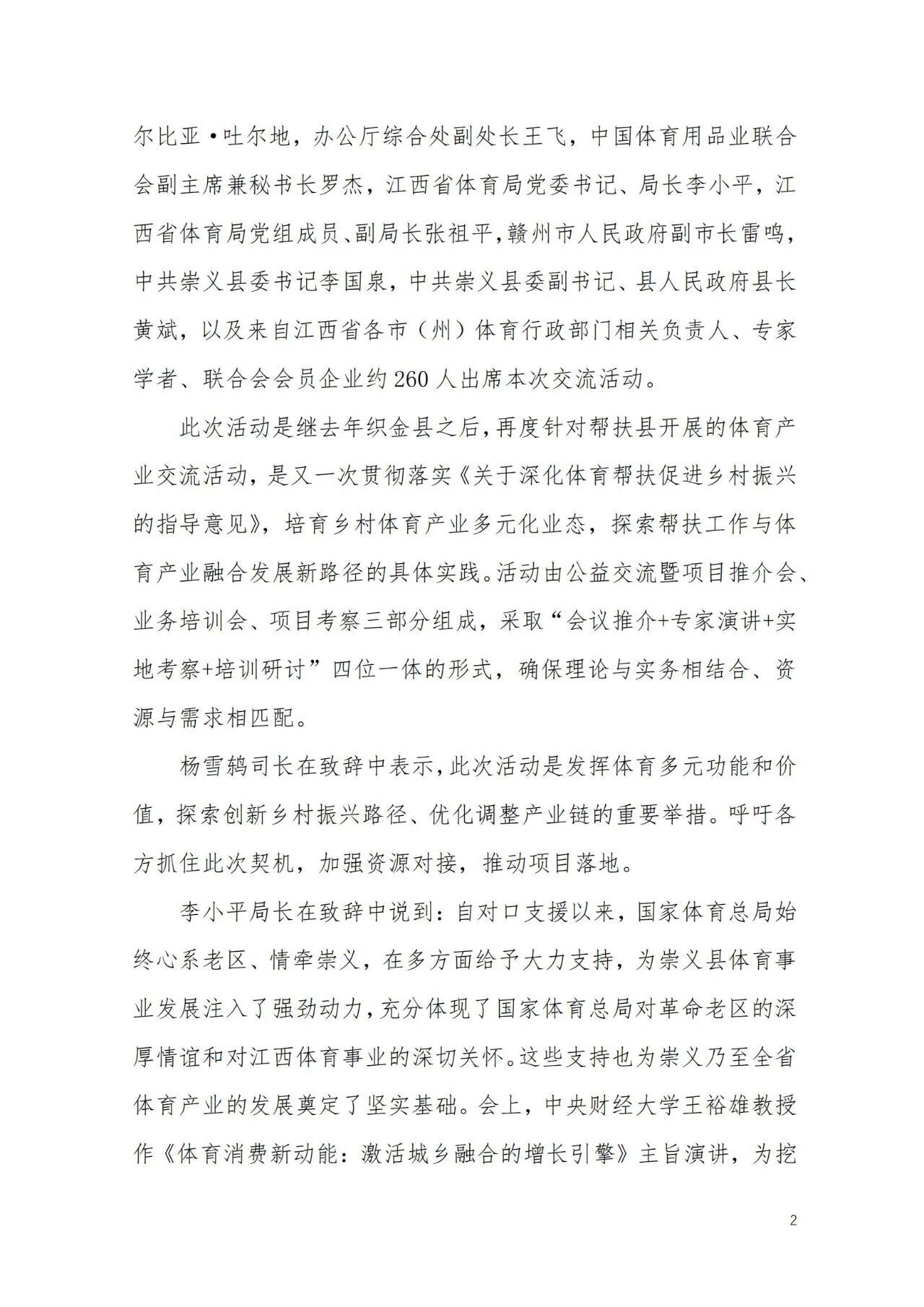 8月20-22日,在国家体育总局体育经济司指导下,由中国体育用品业联合会、江西省体育局、崇义县人民政府共同组织的“体育产业公益交流活动暨江西省体育资源项目推介会”在江西省崇义县成功举行。